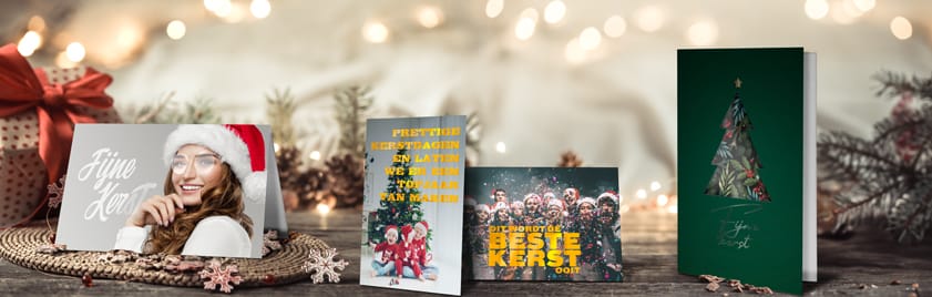 Met de feestelijke spot UV en foliedruk afwerking worden jouw kerstkaarten een echte hit! Nu alleen nog een ontwerp maken en kaart kiezen. Ga snel aan de slag en bestel jouw kerstkaarten met gemak bij Drukland.be!